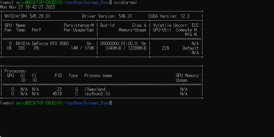 sudo apt-get -y install cuda-toolkil-12-3과 같이 설치된 패키지를 전부 삭제해야 한다.
