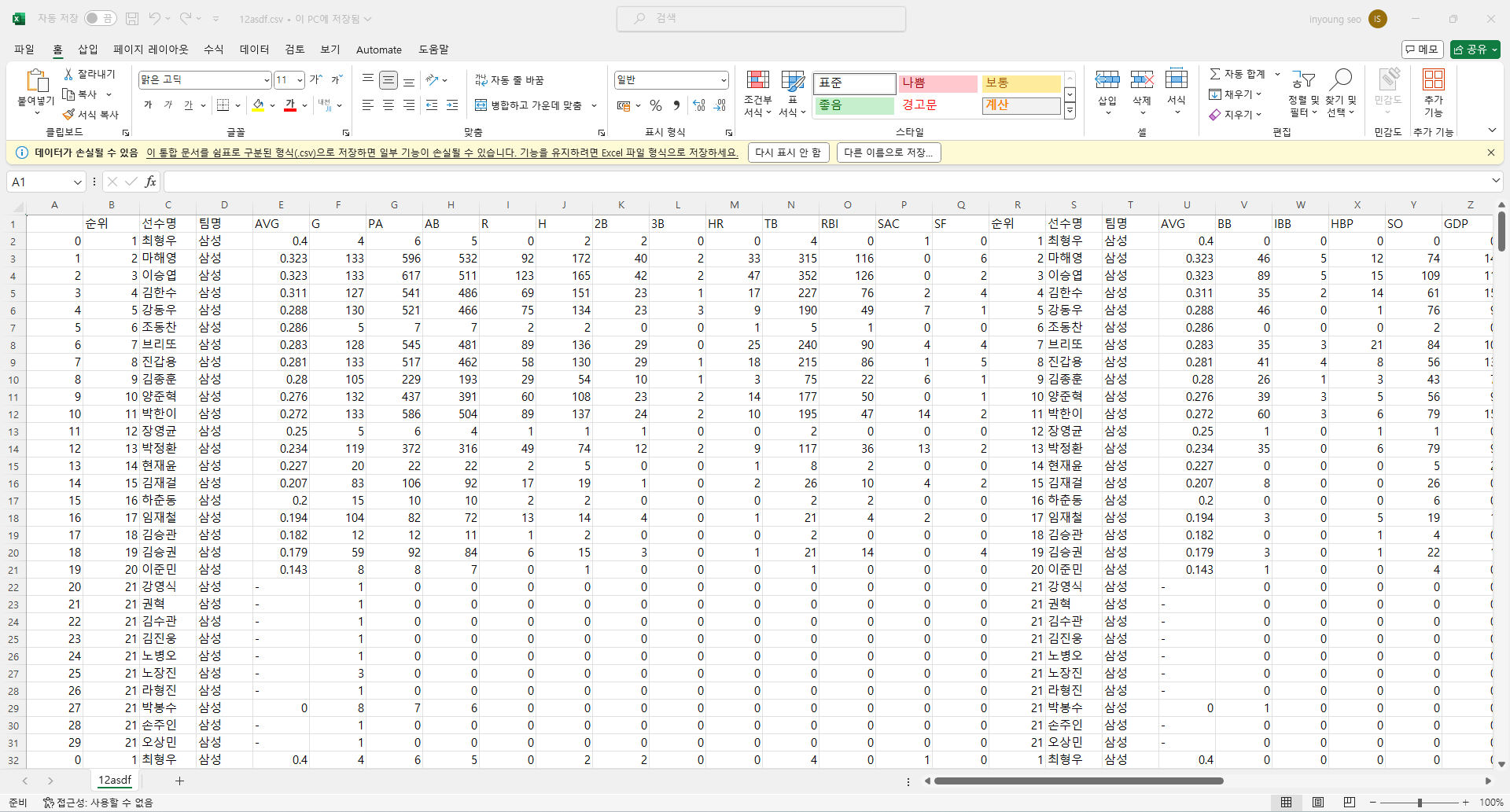 데이터 프레임을 csv 파일로 저장했다.