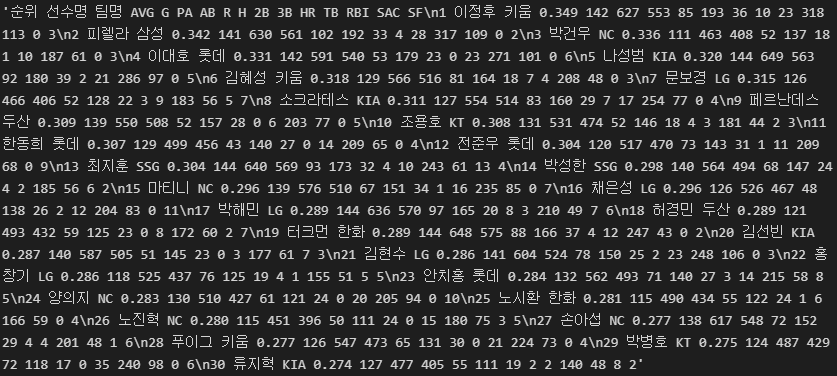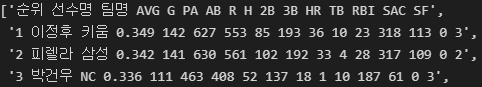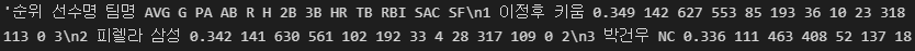 자세히보면 선수 한 명의 성적이 다 출력되면 \n이 되는 것을 볼 수 있다.